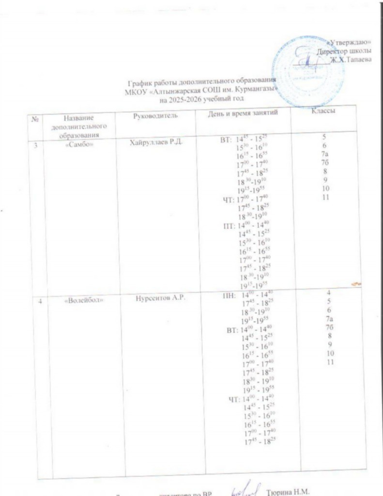 В 2025-2026 учебном году в МКОУ "Алтынжарская СОШ им. Курмангазы" осуществляется обучение по следующим программам дополнительного образования: