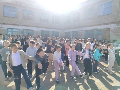 В нашей школе 7 апреля прошла общешкольная зарядка, которую провел учитель физической культуры Таумурунов М.А.