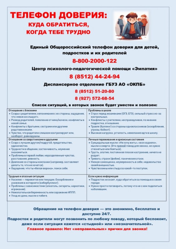 Информационные материалы о работе детского телефона доверия с единым общероссийским номером 8-800-2000-122